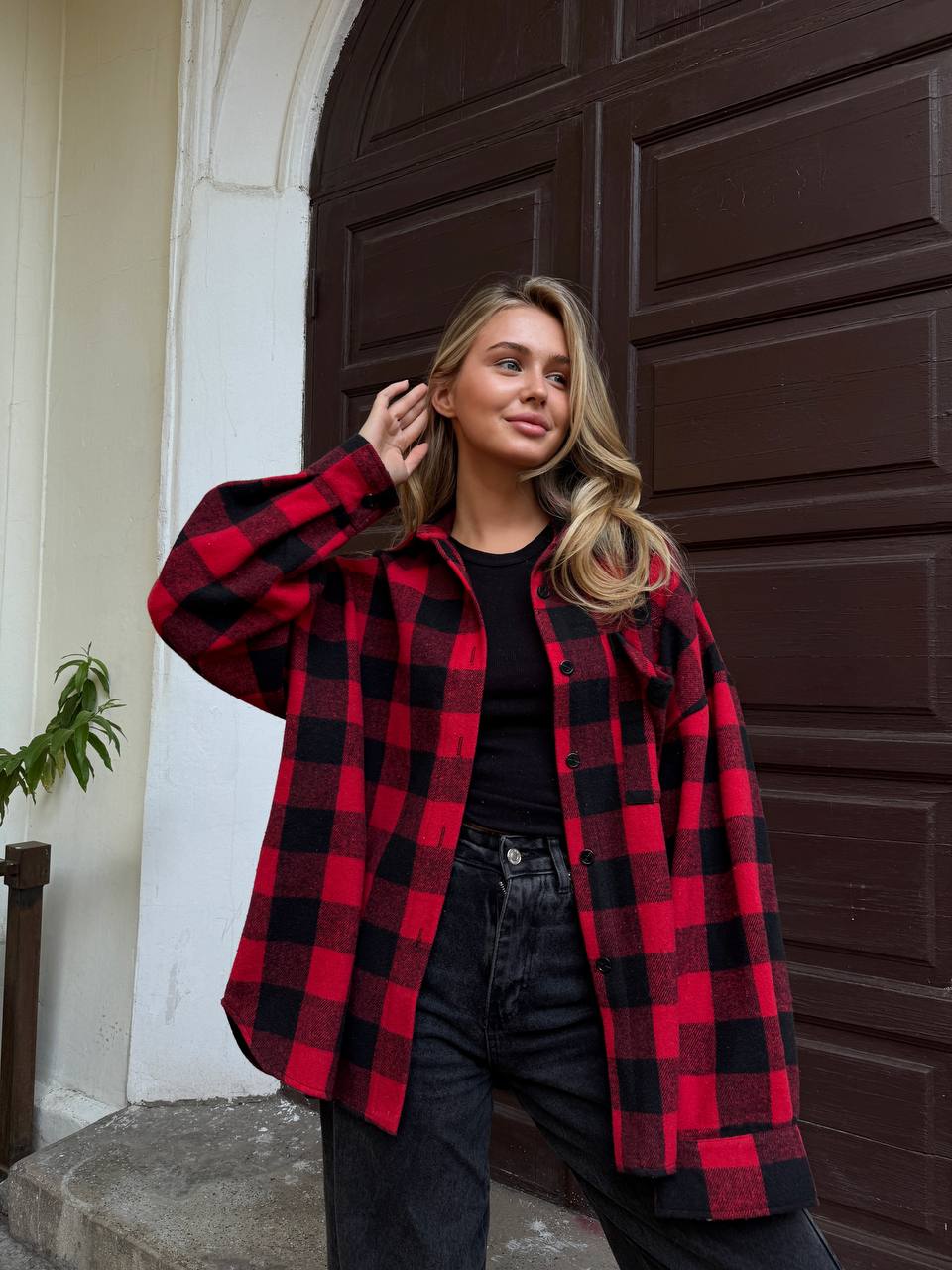 Будьте першим, хто залишив відгук “Oversize рубашка с байки свободного кроя красный”“