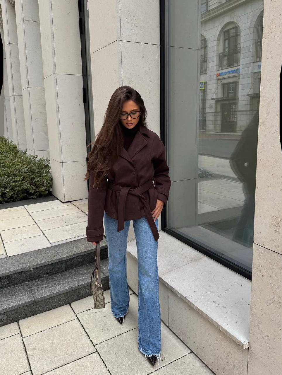 Пальто на подкладке с поясом (кашемир) шоколад
