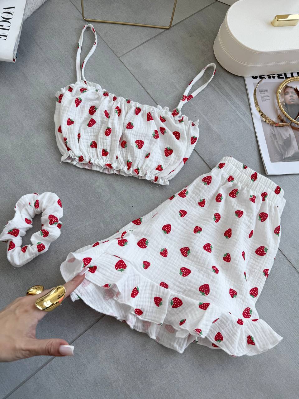 Когда хочется быть красивой и дома – выбирайте нашу пижамку из натуральной ткани, очень комфортная и приятная к телу, шортики свободного кроя и топ, в комплекте идет резинка для волос