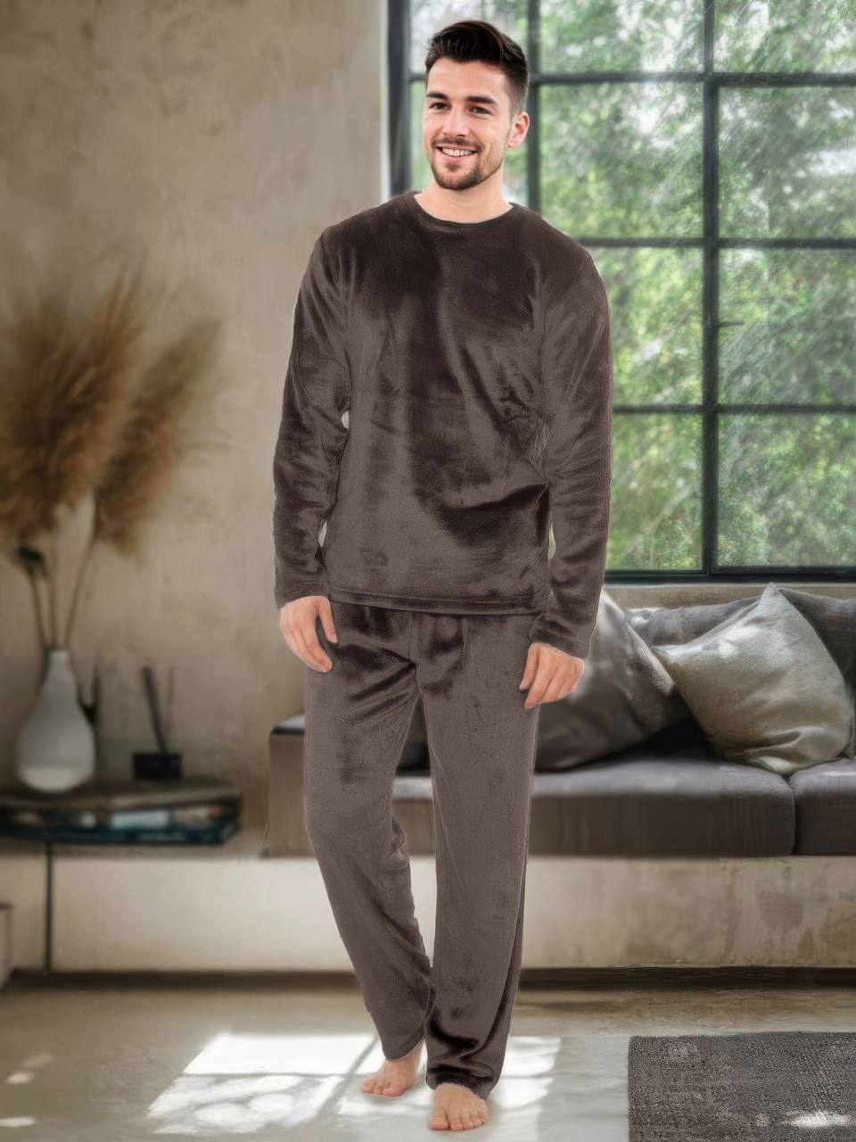 Пижама теплая унисекс Кофта+штаны (двухсторонний плюшик) шоколад