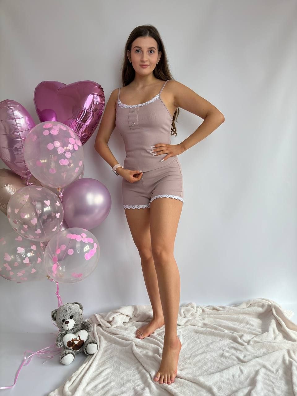 Пижама тройка майка+шорты+брюки трикотаж рубчик мокко