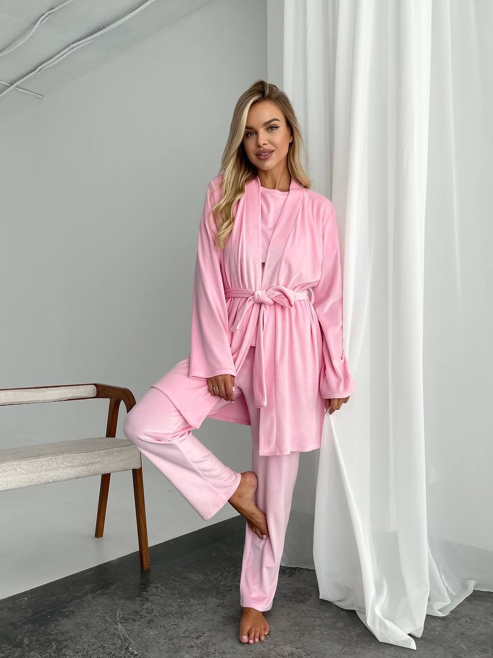 Пижамный комплект-тройка: футболка+халат с поясом+штаны розовый барби