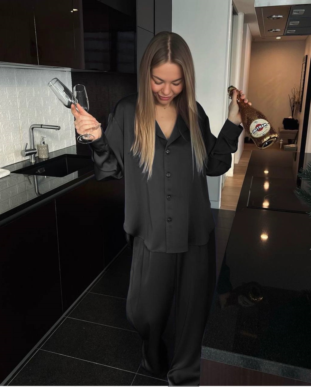 Головна » Магазин » Одяг » Жіночі костюми » Пижамный костюм (брюки+рубашка) шелк черный