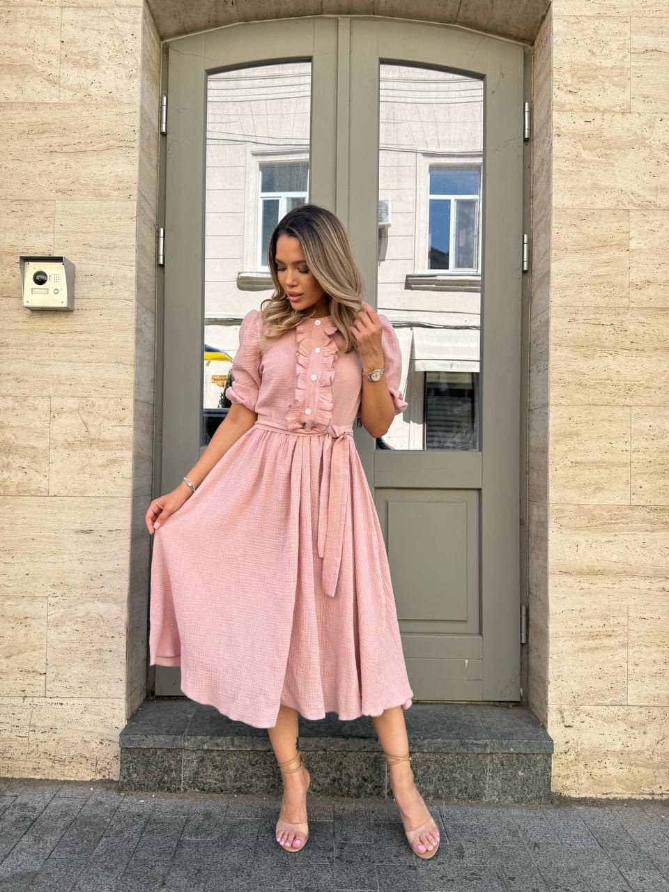 Будьте першим, хто залишив відгук “Платье длины миди с воланами и пуговицами на груди пудра”“