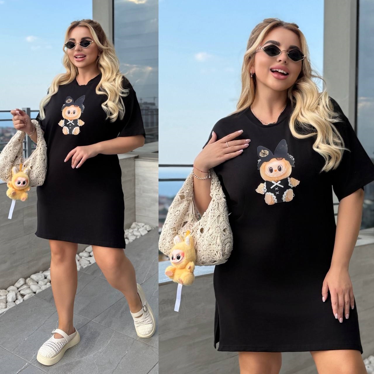 Головна » Магазин » Одяг » Сукня туніка сарафані » Платье-футболка свободного кроя с игривой LABUBU черный