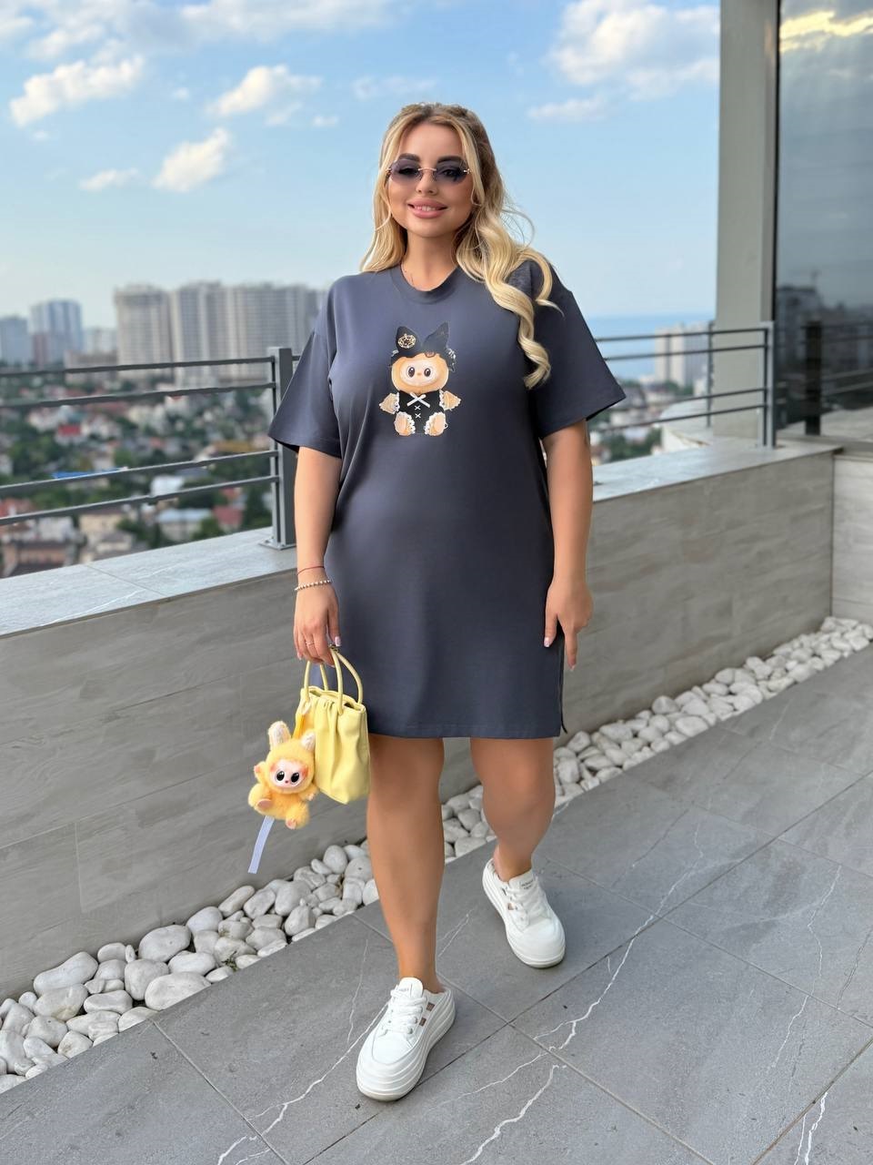 Головна » Магазин » Одяг » Сукня туніка сарафані » Платье-футболка свободного кроя с игривой LABUBU графит