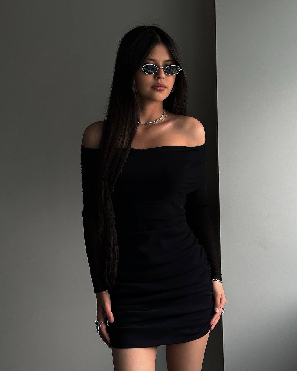 Платье из плотной ткани с открытыми плечиками – это базовая вещь для вашего гардероба.