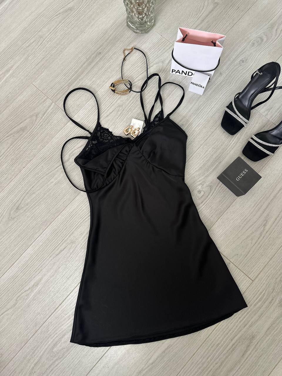 Платье-комбинация на тонких бретелях черный