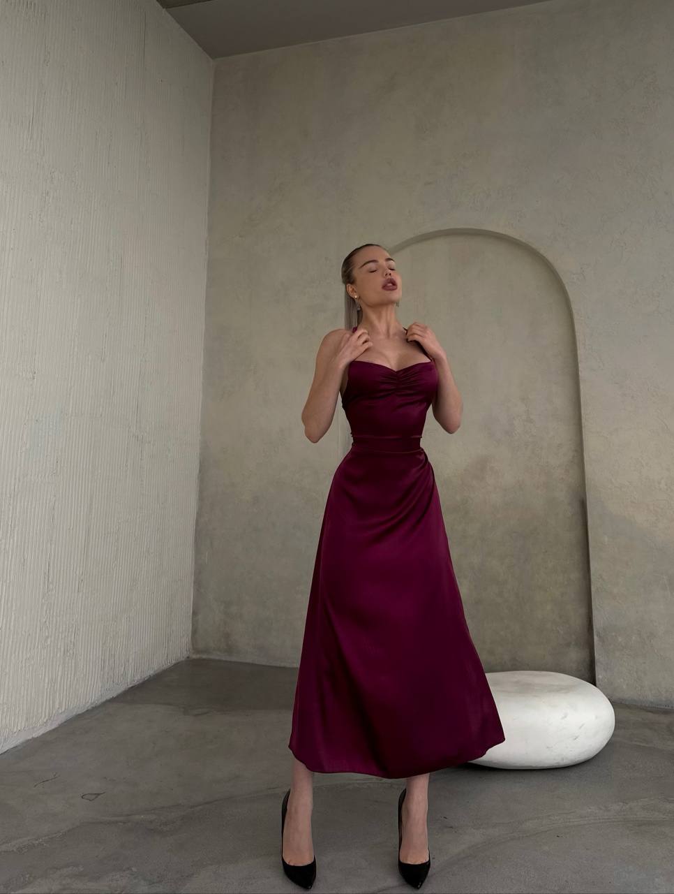 Будьте першим, хто залишив відгук “Платье-комбинация женственного силуэта марсала”“
