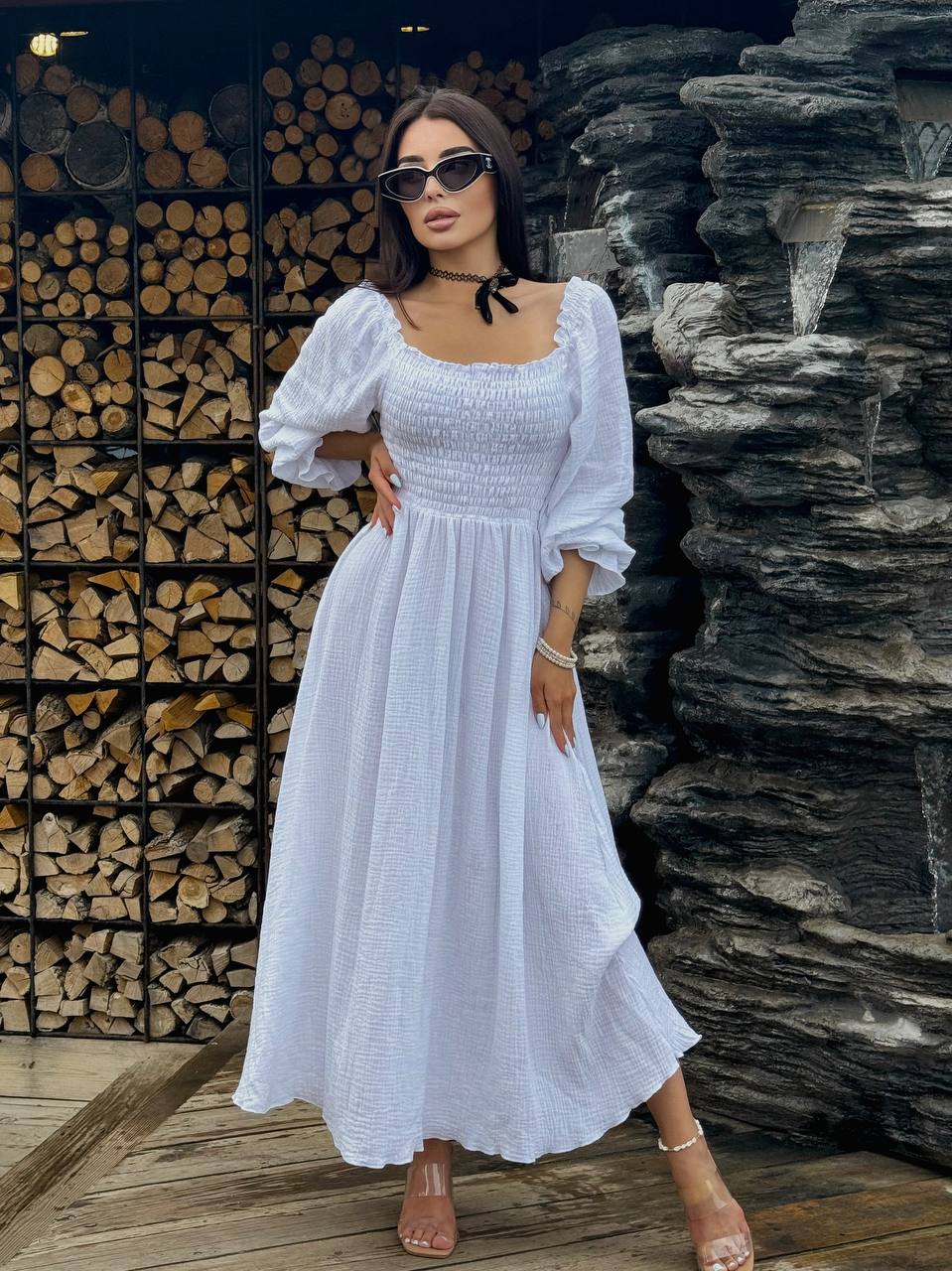 Будьте першим, хто залишив відгук “Платье макси с длинным рукавом фонарик на резинке белый”“