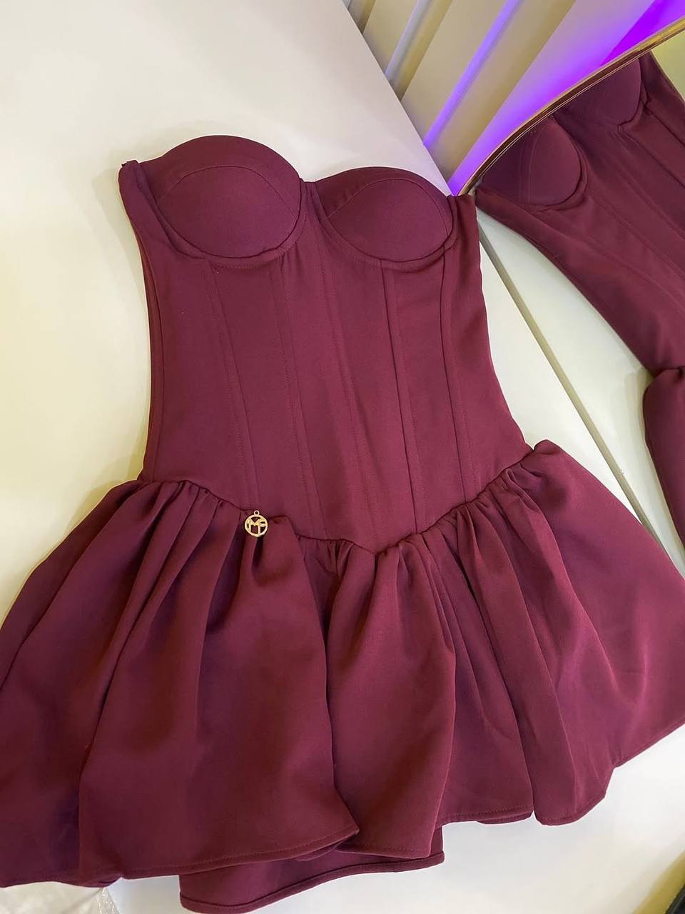 Современная модель с имитацией корсета в , с чашками в длине мини.