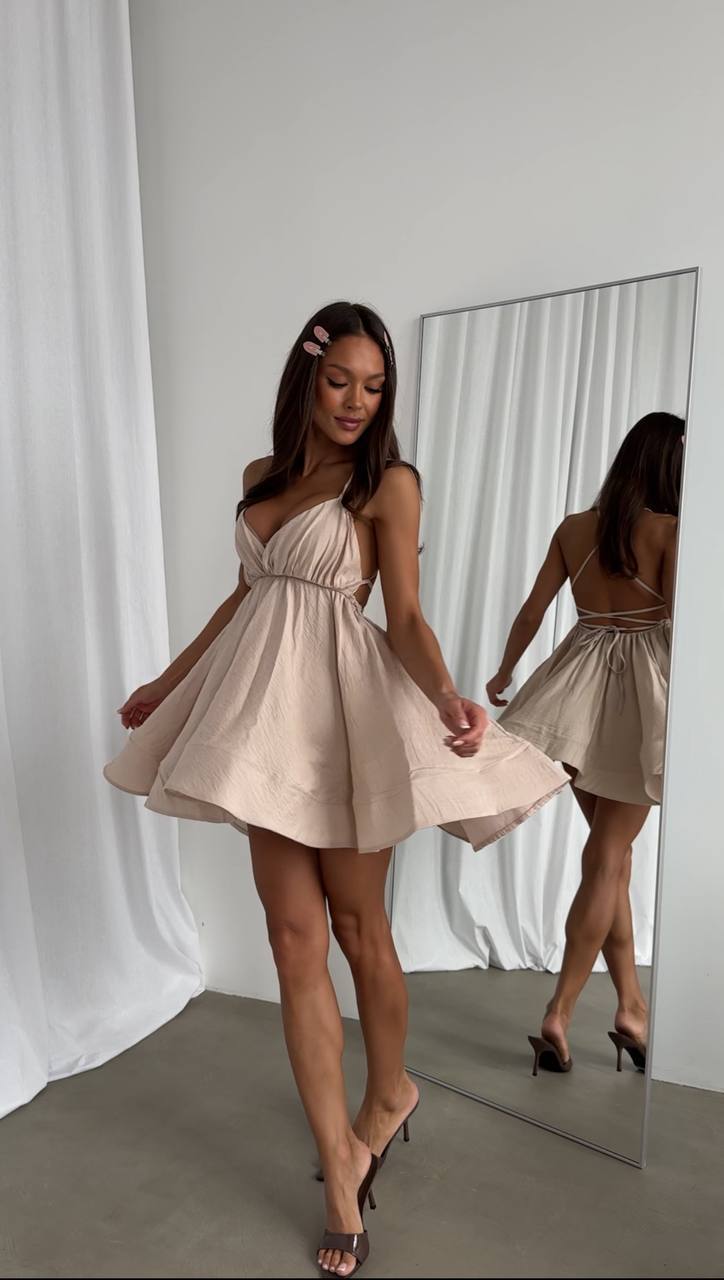 Платье облачко со шнуровкой на спинке бежевый