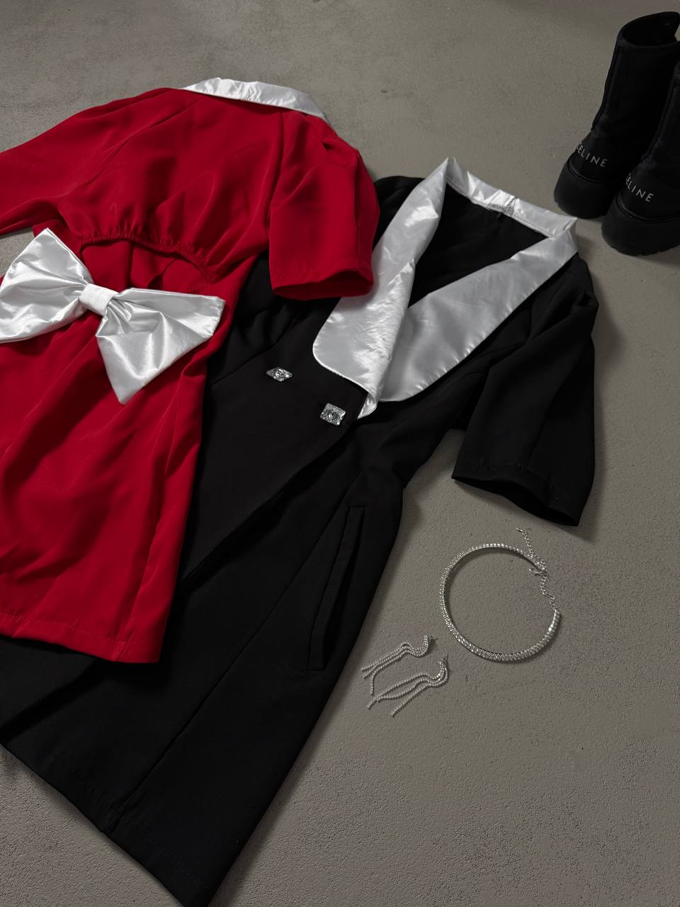 Платье – пиджак с бантом сочетает в себе силу и нежность, позволяя выглядеть одновременно уверенно и утонченно.