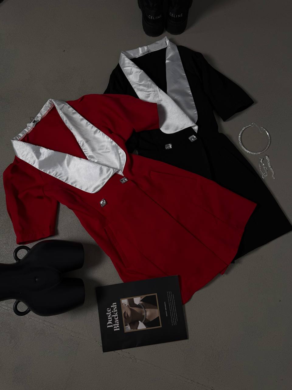 Платье – пиджак с бантом (костюмка + шелк) красный