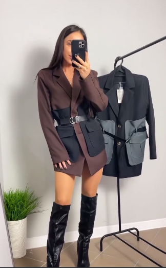 Головна » Магазин » Одяг » Сукня туніка сарафані » Платье пиджак с контрастными карманами с поясом черный