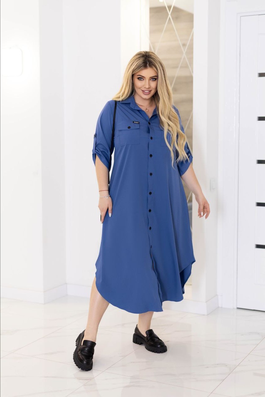 Платье-рубашка, имеет длину миди с асимметричным низом,