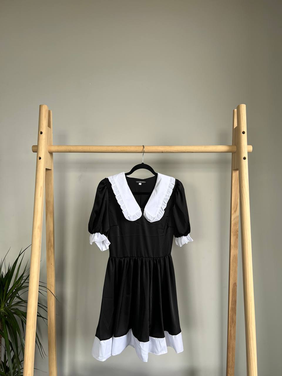 Головна » Магазин » Одяг » Сукня туніка сарафані » Платье с белым воротничком+отделкой по рукавчикам и низу платья черный