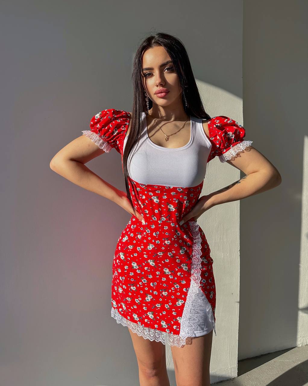 Нежная цветочная новинка. Платье с белыми вставками и кружевом