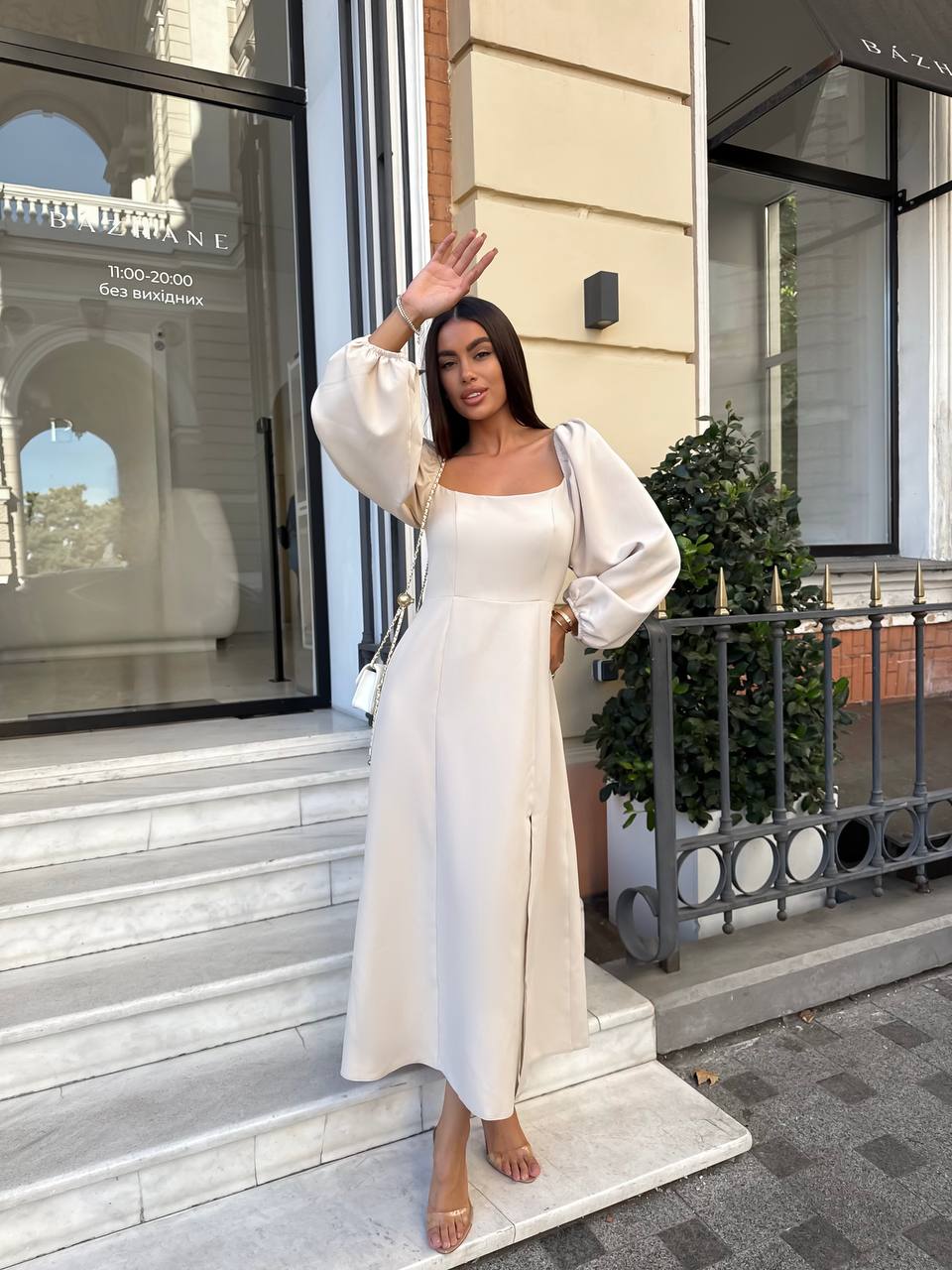 Головна » Магазин » Одяг » Сукня туніка сарафані » Платье с длинным рукавом и разрезом по ноге (Костюмка) светлый беж