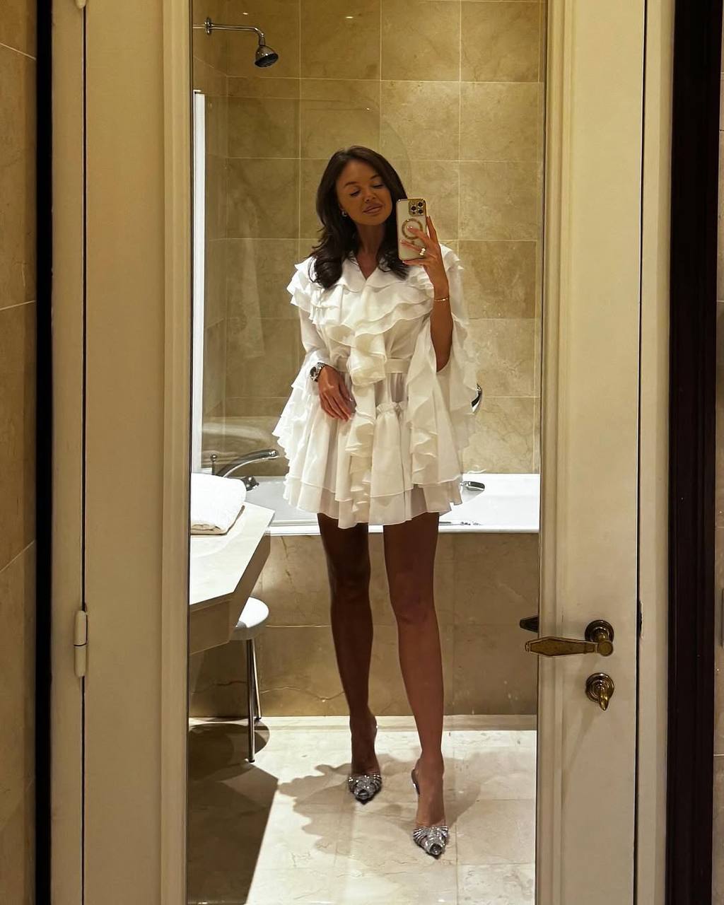 Объемные многослойные рюши создают романтический и одновременно трендовый силуэт, идеально подходящий для особых событий, фотосессий или вечерних выходов