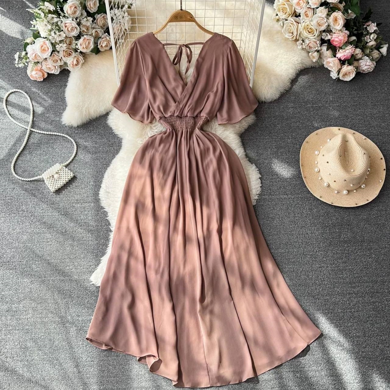 Головна » Магазин » Одяг » Сукня туніка сарафані » Платье с расклешенной юбкой талия на резинке+воздушными рукавчиками+вырезом по спинке мокко