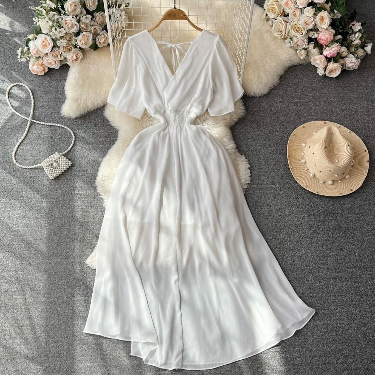 Головна » Магазин » Одяг » Сукня туніка сарафані » Платье с расклешенной юбкой талия на резинке+воздушными рукавчиками+вырезом по спинке белый