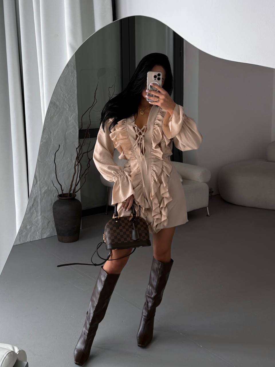 Головна » Магазин » Одяг » Сукня туніка сарафані » Платье с резинкой на талии (креп жатка) бежевый