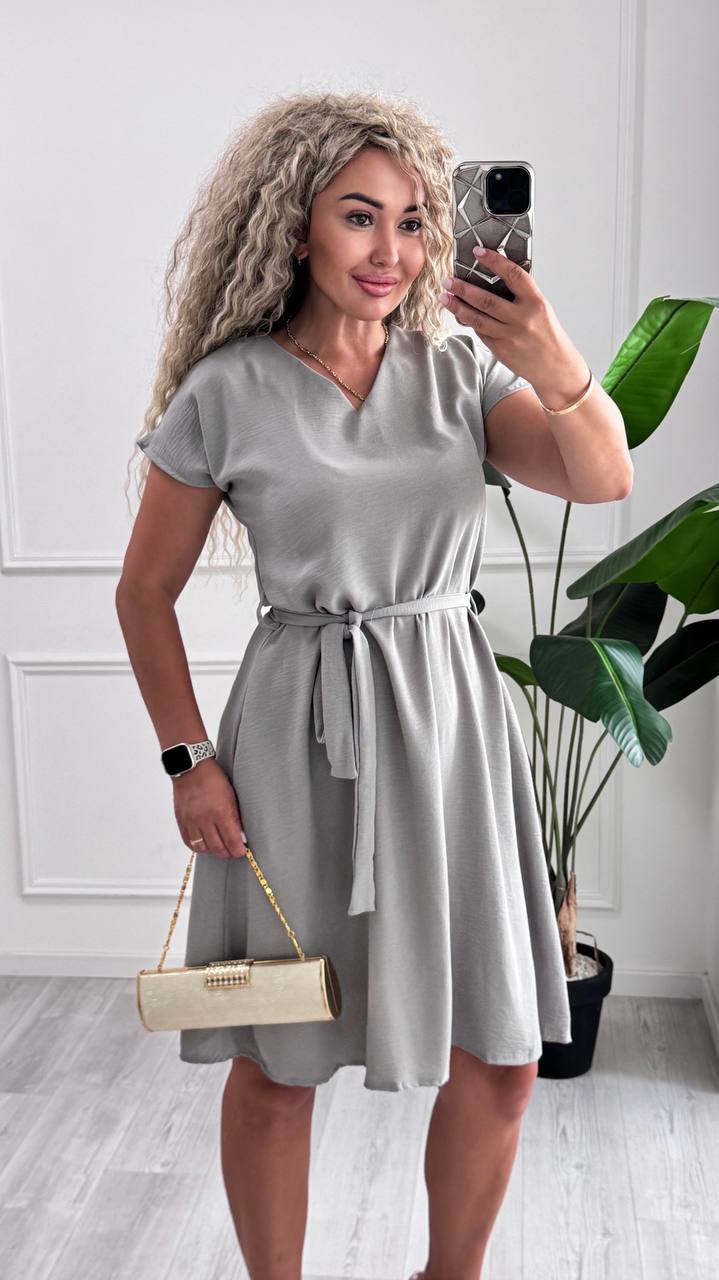 Головна » Магазин » Одяг » Сукня туніка сарафані » Платье с съемным поясом (креп жатка) серый