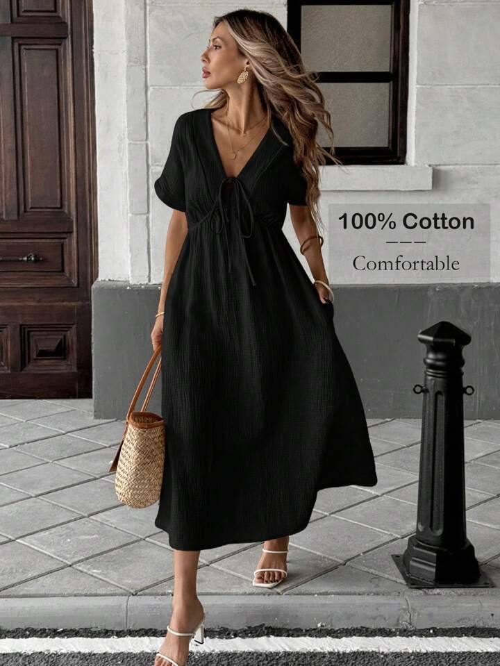 Будьте першим, хто залишив відгук “Платье с V-образным глубоким вырезом с завязками спереди черный”“