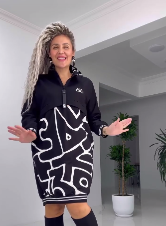 Платье спорт шик, удачная комбинация однотона с принтом, делает изделие изящным и оригинальным, привлекает взгляды.