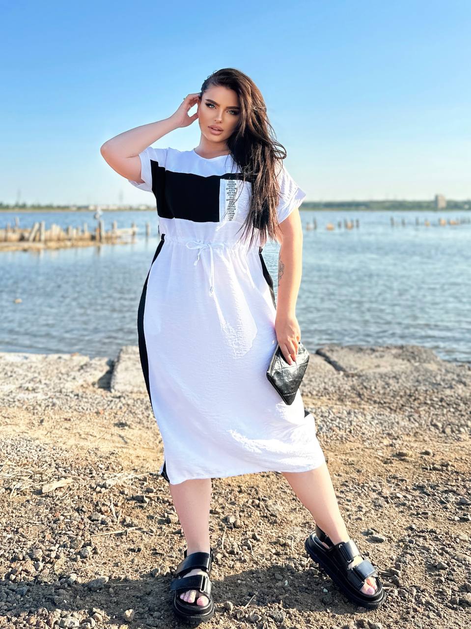 Платье свободного кроя, украшает вшитым пояском и хрупко подчеркивает талию.