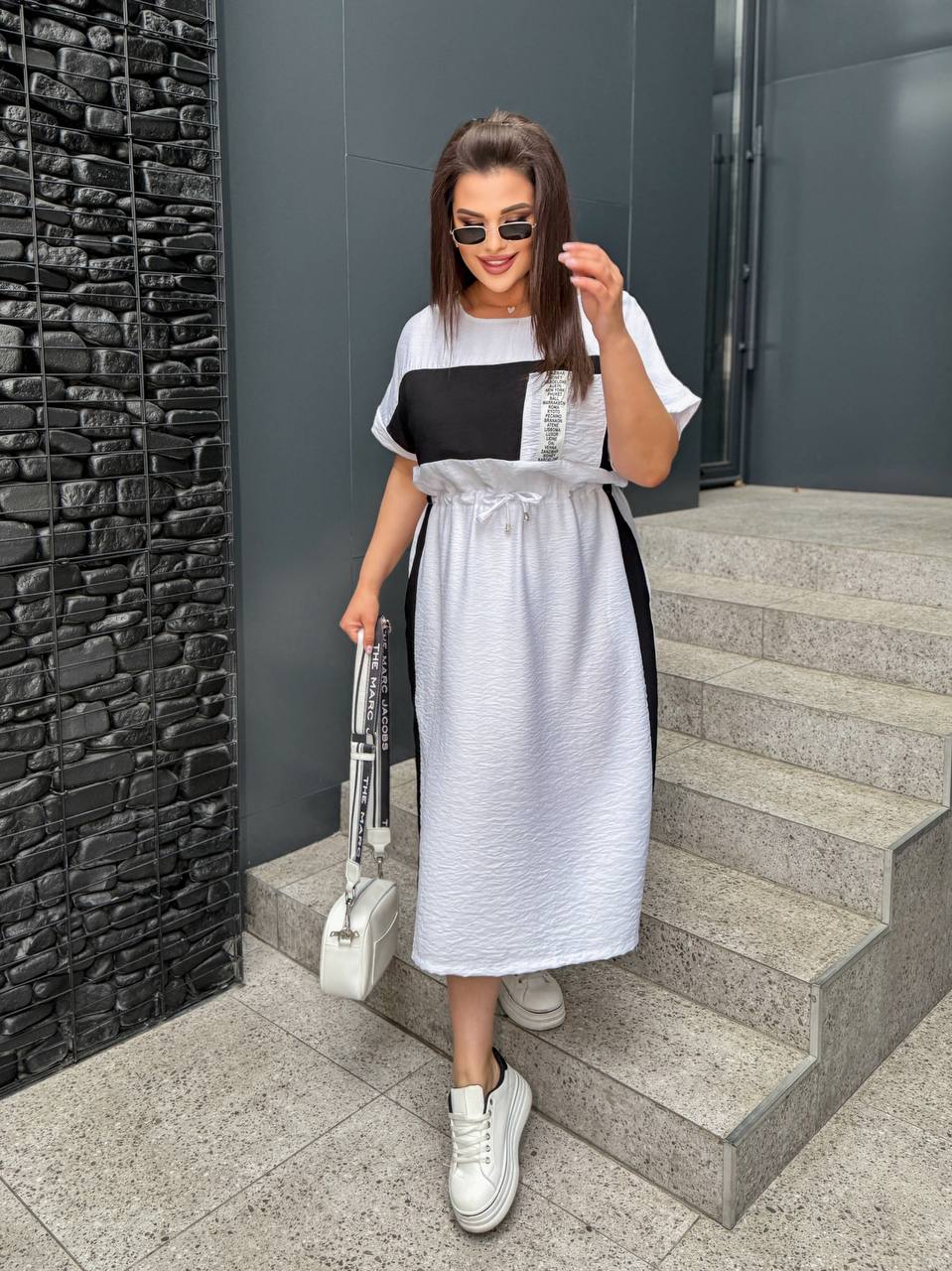 Платье свободного кроя, украшает вшитым пояском и хрупко подчеркивает талию.