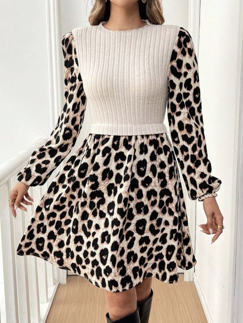 Будьте першим, хто залишив відгук “Платье в леопардовый принт+вставкой ангоры с круглой горловиной белый+лео”“