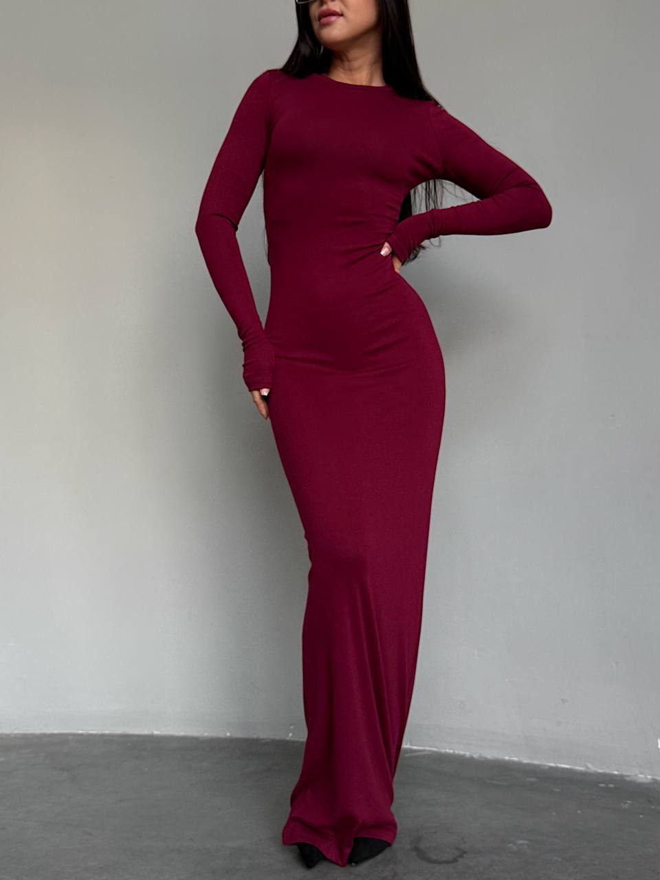 Будьте першим, хто залишив відгук “Платье в стиле Skims макси длины с вырезом для пальчиков марсала”“