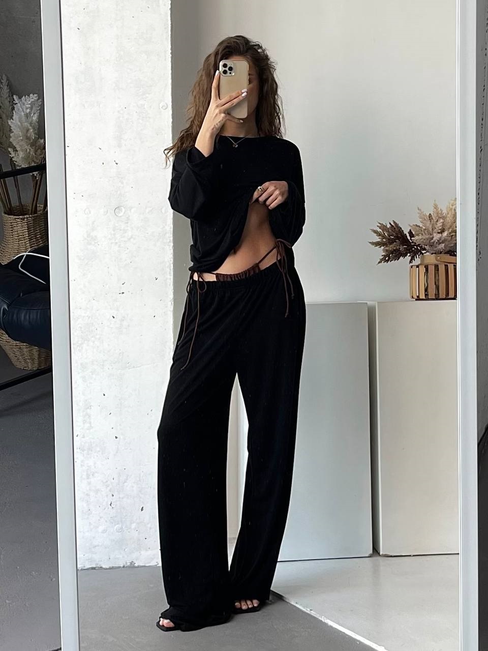 нежная и приятная для тела. Оверсайз крой, высокая посадка брюк, лонг свободного кроя.