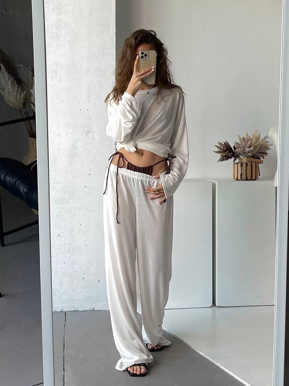 нежная и приятная для тела. Оверсайз крой, высокая посадка брюк, лонг свободного кроя.