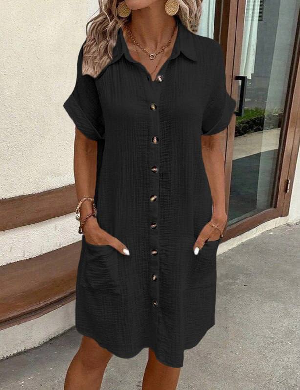 Будьте першим, хто залишив відгук “Повседневное нежное женское платье-рубашка из муслина черный”“