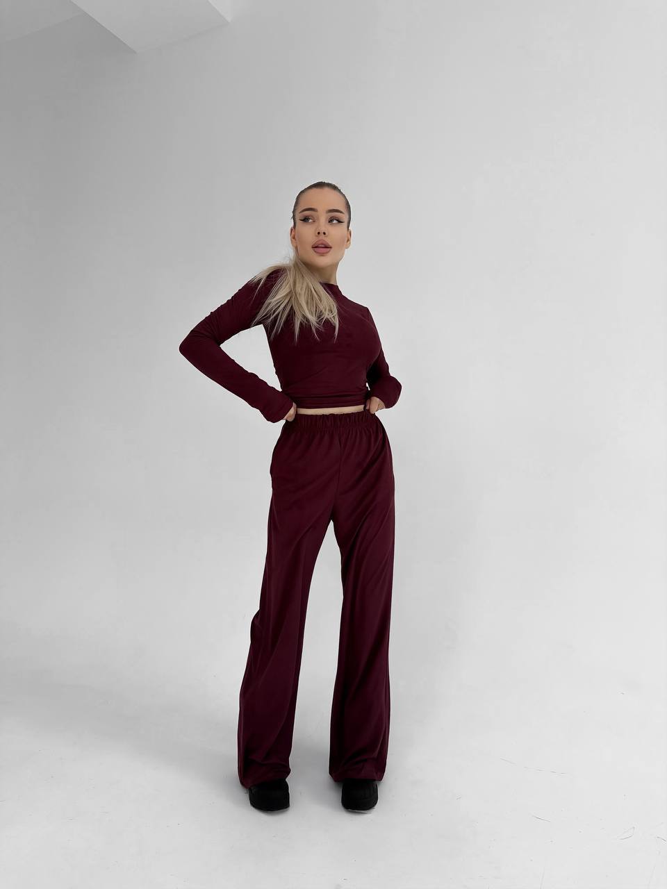 Будьте першим, хто залишив відгук “Практичный костюм Кофта+штаны на резинке бордо”“