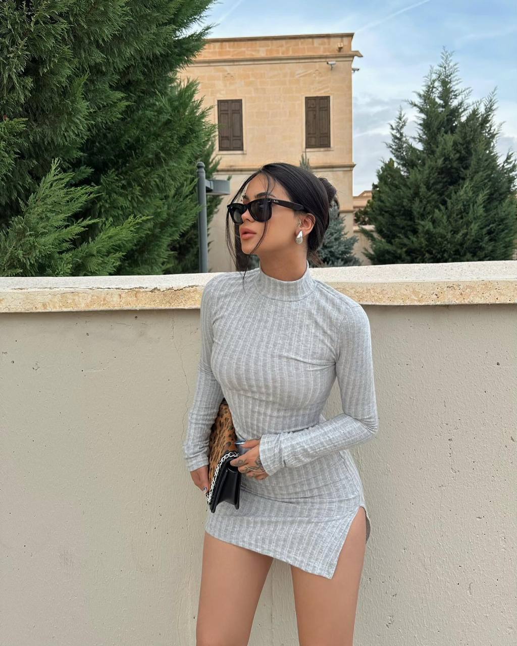 Приталенная модель с разрезом по ноге в длине мини.
