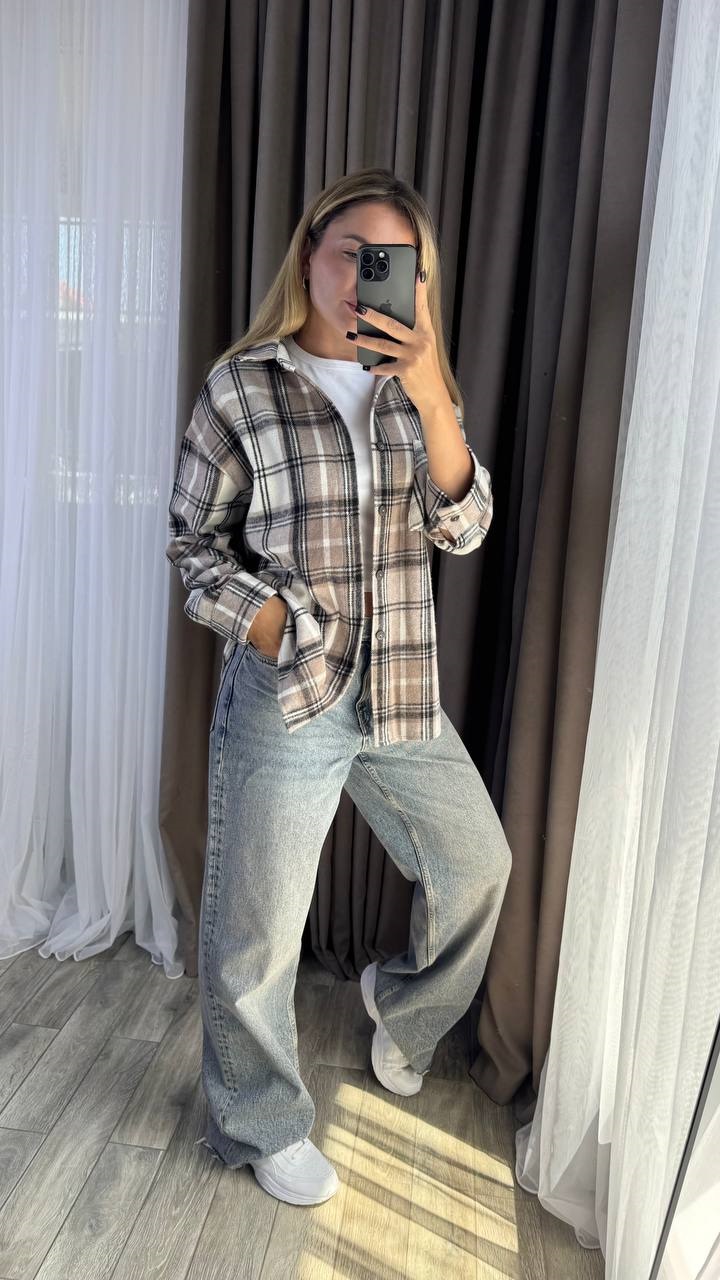 Приятная к телу рубашка в клетку из кашемира бежевый