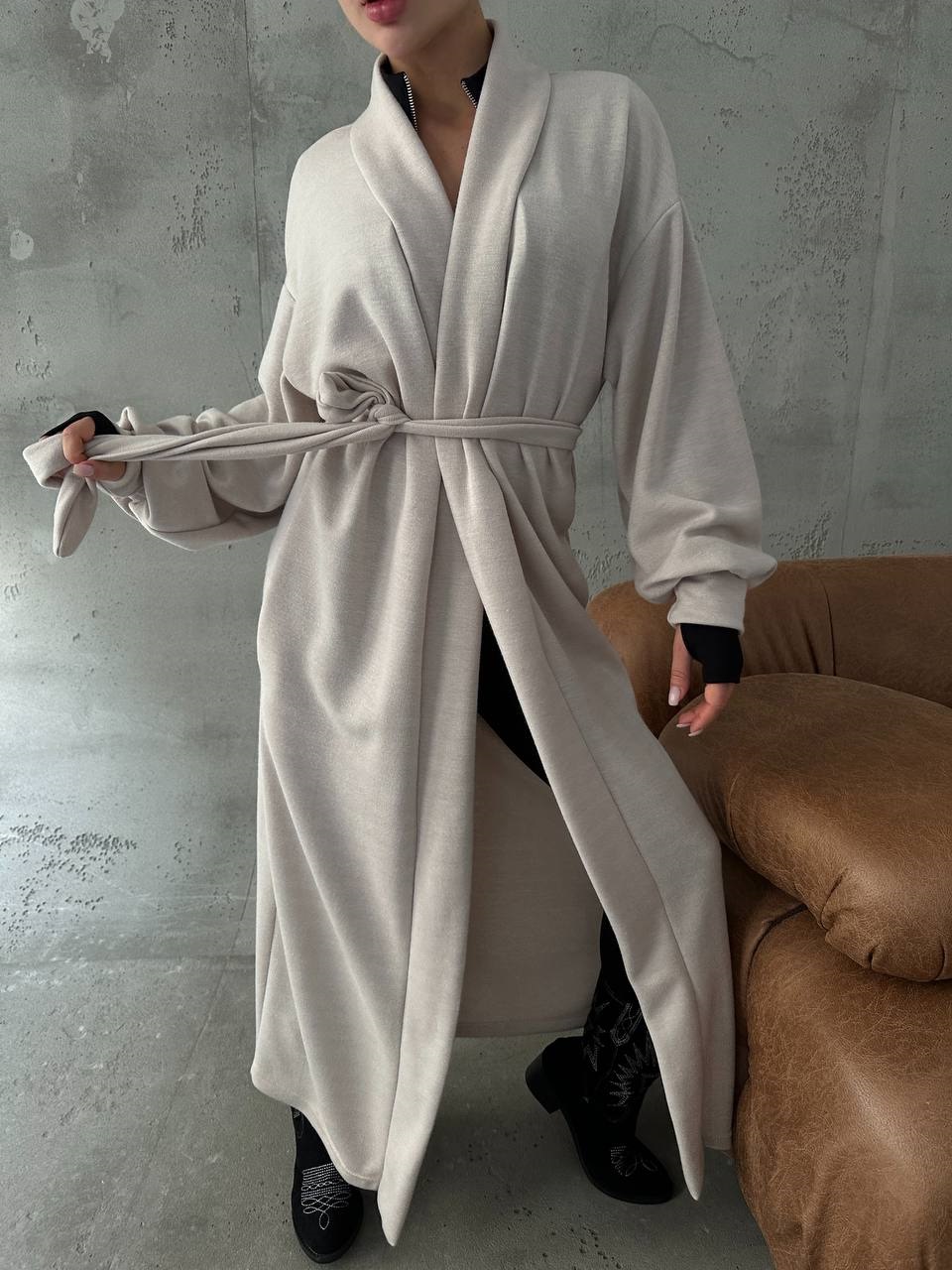 Приятный к телу кардиган длиной макси с пышными рукавами светло-бежевый