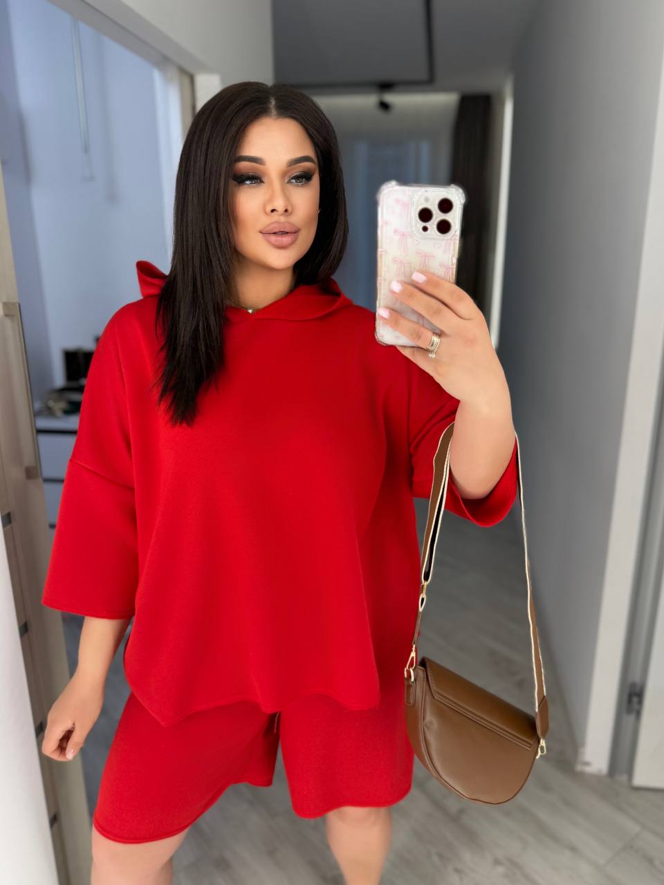 Описание: прогулочный костюм ,футболка с шортами,свободного кроя с необработанными краями