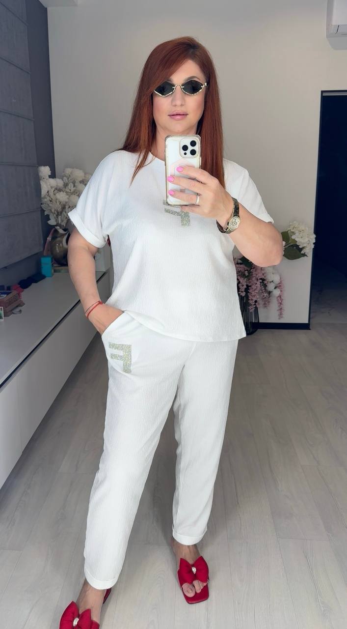 Будьте першим, хто залишив відгук “Прогулочный костюм Футболка+брюки высокая посадка молочный”“