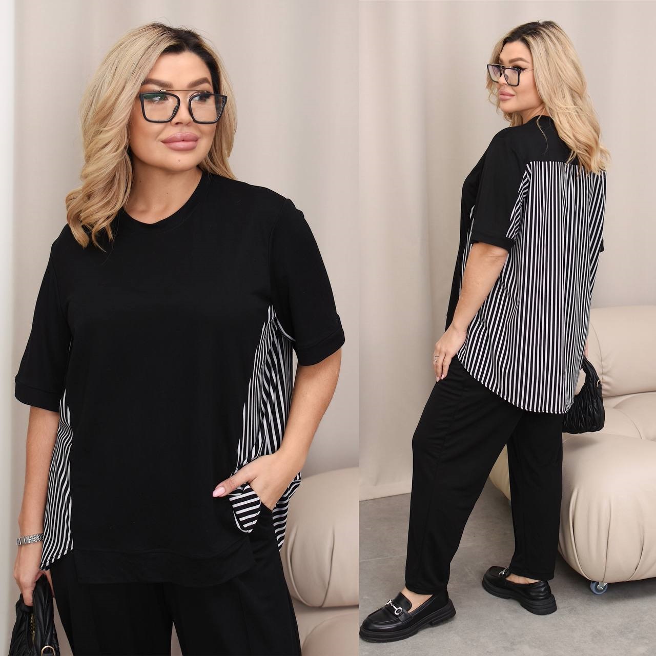 Кофта оригинального кроя выполнена из трикотажа с добавлением супер софта на спинке.