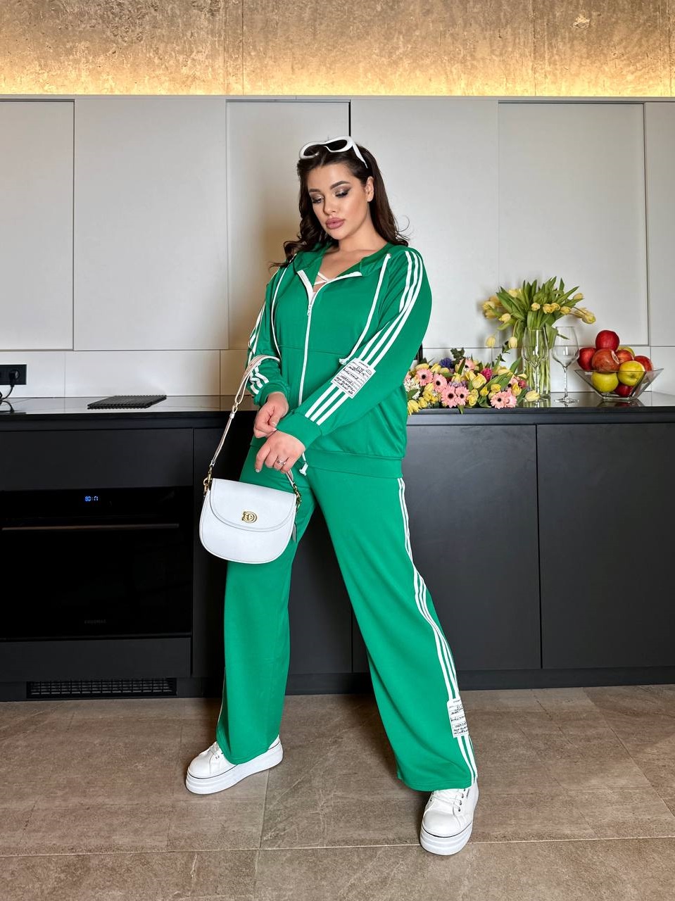 Будьте першим, хто залишив відгук “Прогулочный костюм с лампасом (кофта на молнии с капюшоном+брюки) зеленый”“