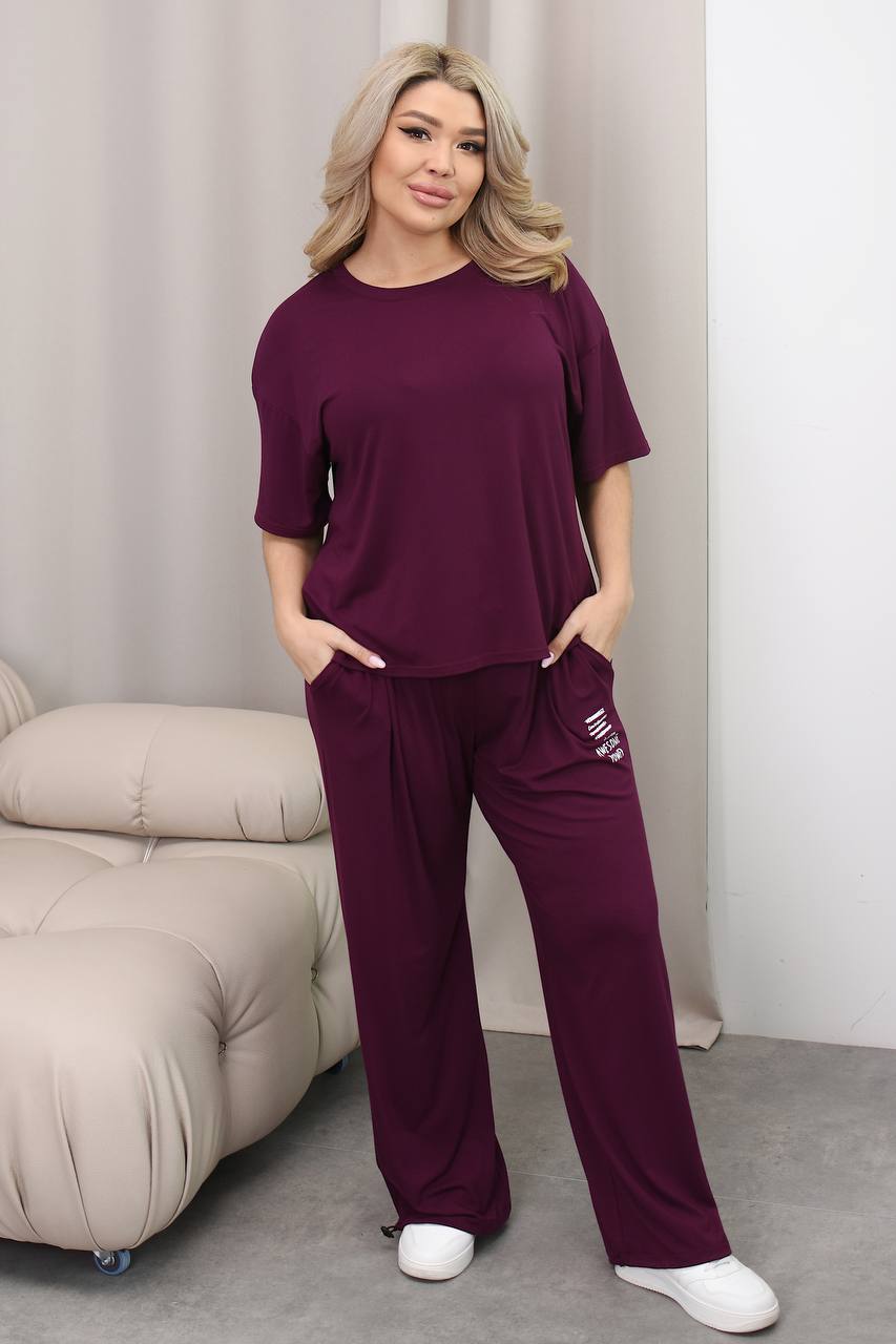 Будьте першим, хто залишив відгук “Прогулочный костюм тройка: Брюки палаццо на кулиске+шорты+футболка OVER с накатом бордо”“
