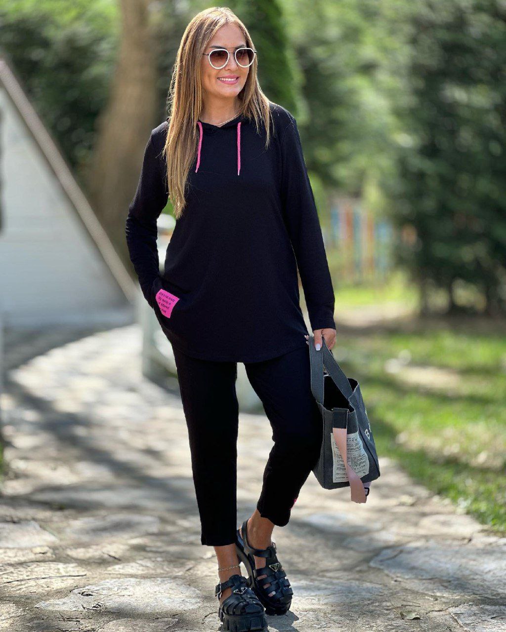 Прогулочный костюм: Удлиненная туника свободного кроя+штаны на высокой посадке черный