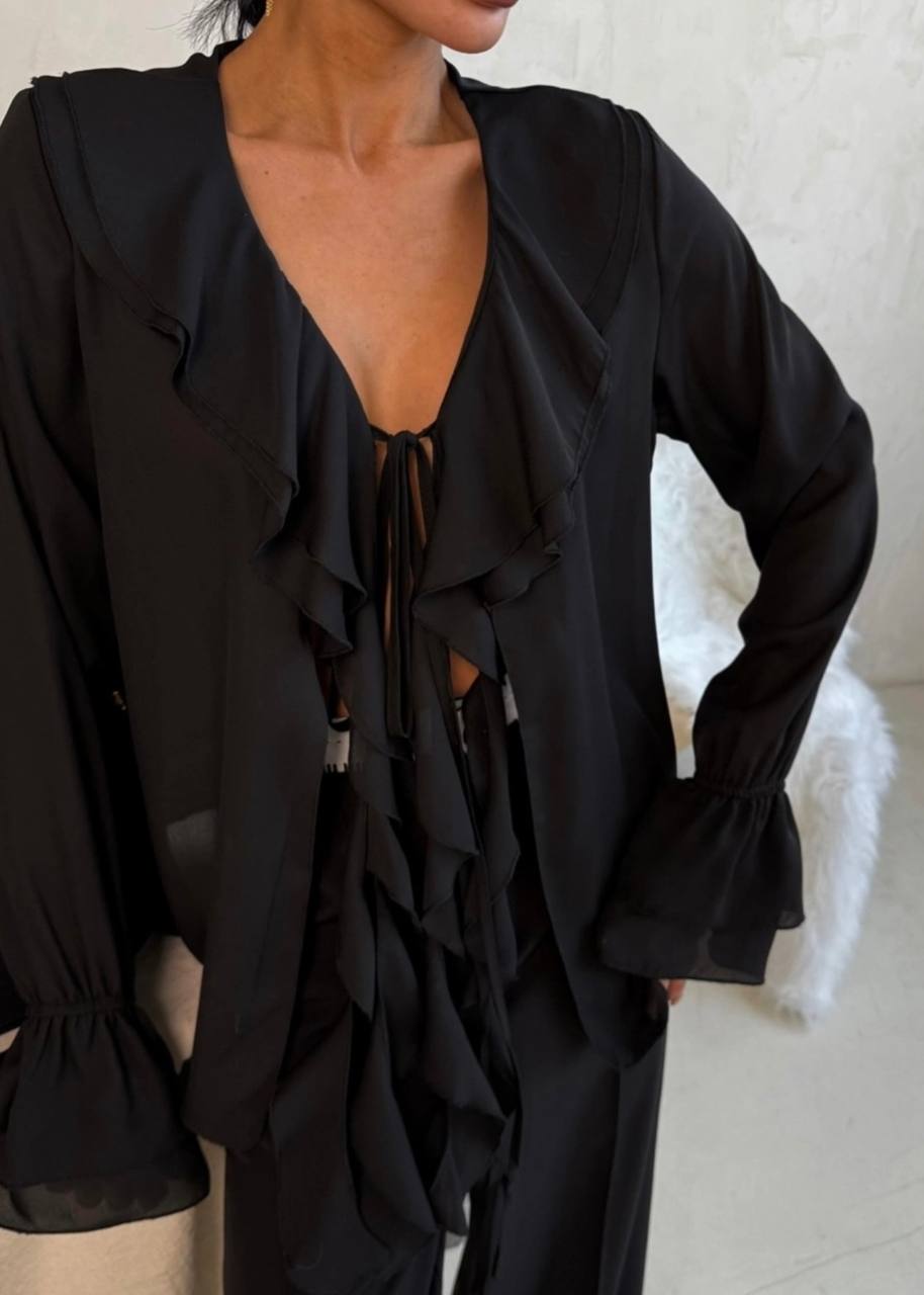 Романтическая шифоновая блузка с воланами черный