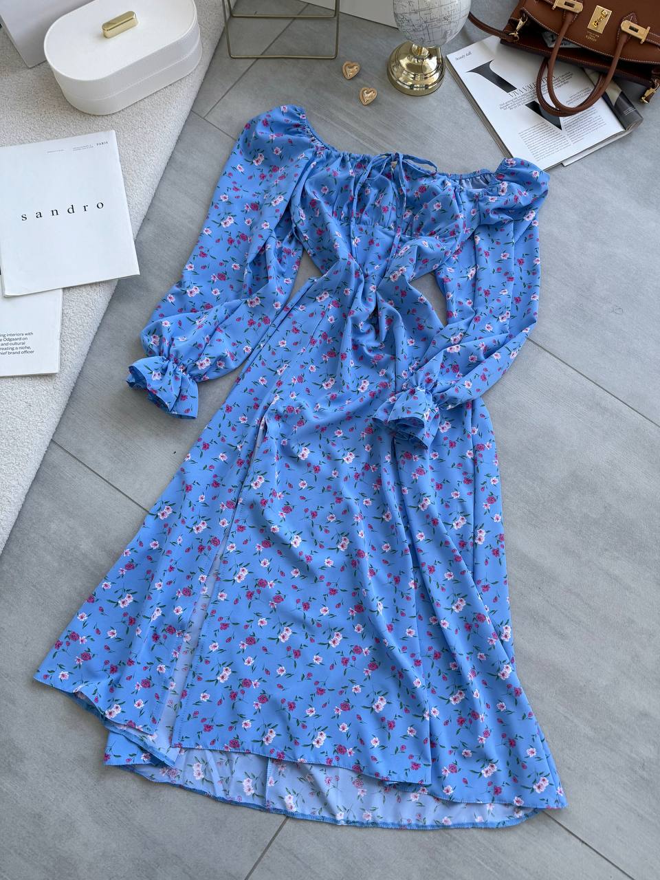 Будьте першим, хто залишив відгук “Романтическое легкое платье с разрезом по ноге+шнуровкой по спинке цветы на голубом фоне”“