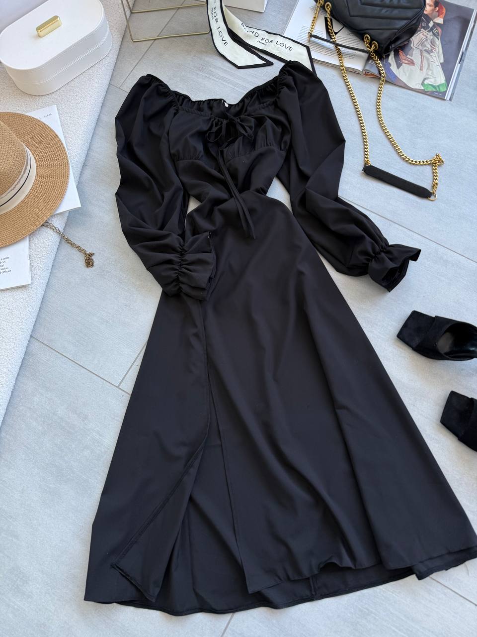 Будьте першим, хто залишив відгук “Романтическое легкое платье с разрезом по ноге+шнуровкой по спинке черный”“